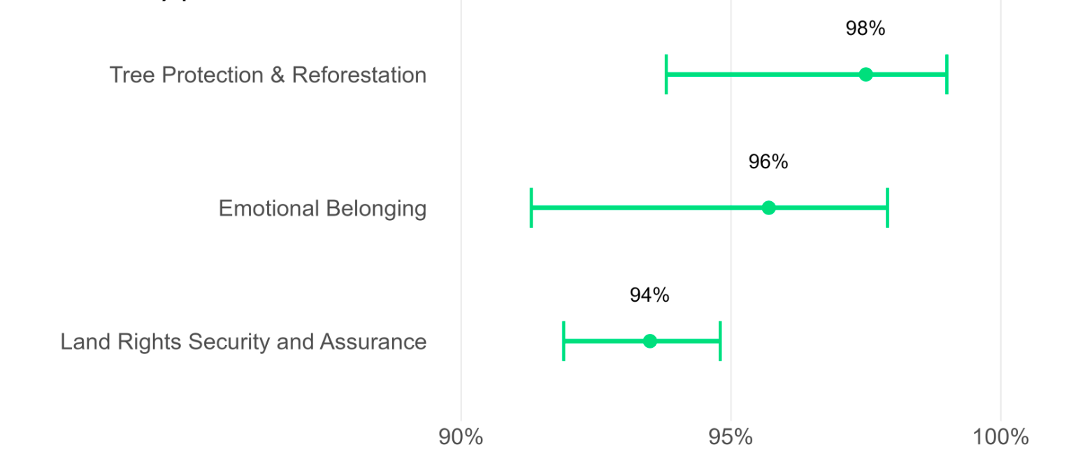 The strongest and most immediate impacts relate to land tenure security and emotional well-being.