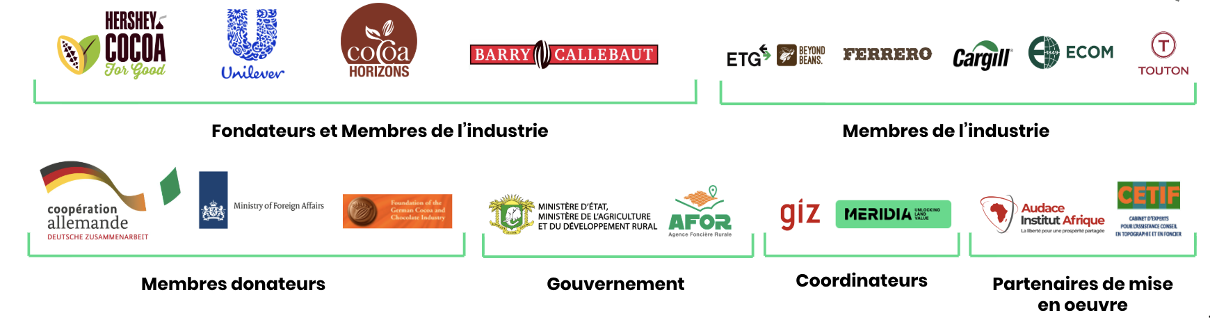 CLAP consists of founding industry leaders The Hershey Company, Unilever, Barry Callebaut, and Cocoa Horizons Foundation, joining forces with other industry members ETG-Beyond Beans Foundation, Ferrero, Cargill, ECOM and Touton .